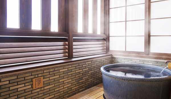 入浴を楽しめる湯処は男女それぞれに大きな内風呂と露天風呂、サウナを設えました。趣き異なる4つの貸切風呂も備えています。