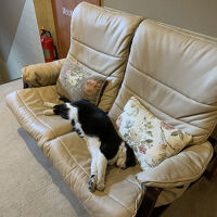奥嬬恋と言っても民家の中にある感じでした。景観はあまり良くないなぁなんて思ってたら、看板猫ちゃんが2匹も!知らなかったので、とても嬉しかったです。部屋のドアを開けてると入ってくることがあるそう。2匹ともお目にかかれてラッキーでした。料理はコ