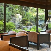 大きな建物で昭和感を感じます。 ロビーから立派な庭が見えました。 チェックイン時にも丁寧で2食付きでしたが 食事処での夕食も程々で満足でした。 佳松閣6階の部屋からは真下に玉湯川が見られ、古いながら何の不便もありませんでした。 姉妹館の旅亭山の井の温泉も入れるとの事でした。