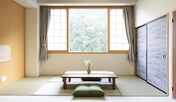 客室は洋室から純和風の和室まで、ニーズに合わせて用意されています。桔梗山や森の眺望を楽しめる客室もあります。