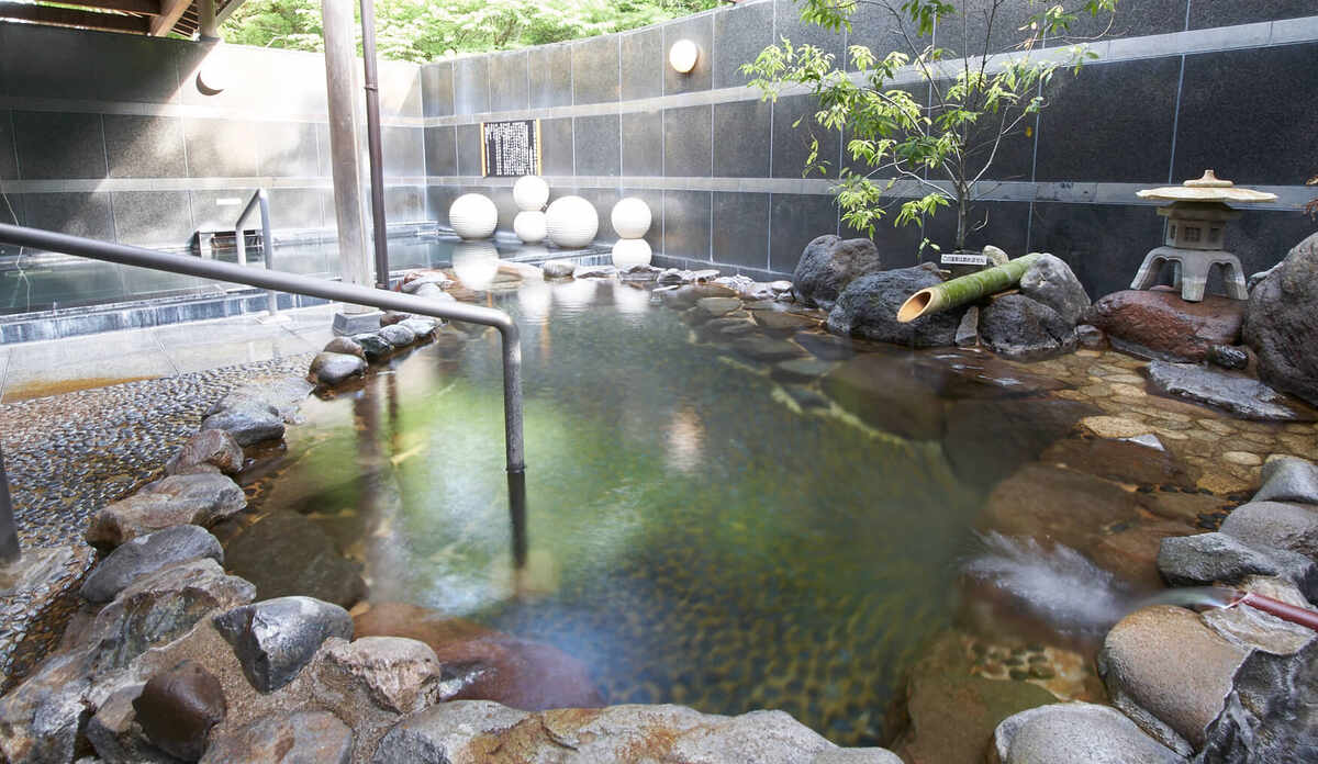 深沢川を水源とする湧水を引いた湯処や料理が魅力の旅館。湧水を使ったサウナや森林浴テラス、磐梯熱海温泉を引いた露天風呂や大浴場を完備。夕食は、湧水と地元の食材を使用した蒸し料理や鉄板焼きなどの創作料理を、朝食は県産のコシヒカリや郷土料理などをいただくことができます。料理とともに味わえる福島の銘酒を揃えたバーも用意。自然豊かな景色を望む客室は、和室・和洋室・ツインがあります。館内には、赤べこで飾られた卓球ルームを併設。磐梯熱海IC・JR磐梯熱海駅より車で約5分、駅から送迎サービスがあります。