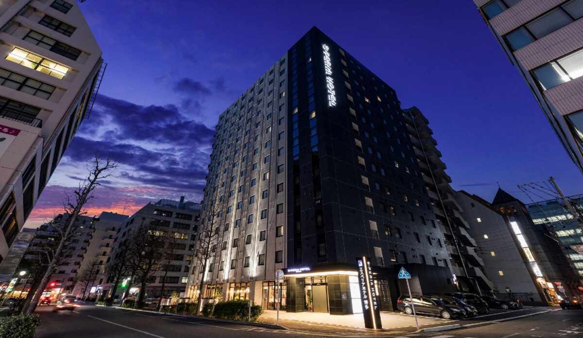 博多駅から徒歩圏内のホテルです。九州場所で力士も利用するためのぼりが立てられアピールされていました。室内に洗面台があるため、浴室とトイレは独立。好みは分かれるかもしれません。朝食は利用していませんが、品数も悪くなさそうです。チェックアウト後のランチの割引があるようです。コーヒー等ドリンクを無料で飲めるスペースは、テーブル、コンセントが充実していました。観光メインの宿泊にはまだきれいなホテルですし選択肢に入れても良いと思います。