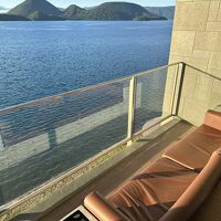大型のホテル「洞爺サンパレスリゾート&スパ」の別館の位置づけで、全館がラグジュアリーなつくりのホテルです。全室が洞爺湖に面していて、ソファーでゆったりとくつろげるテラスが魅力。一日中このテラスで洞爺湖を眺めていても飽きることはありませんでした。