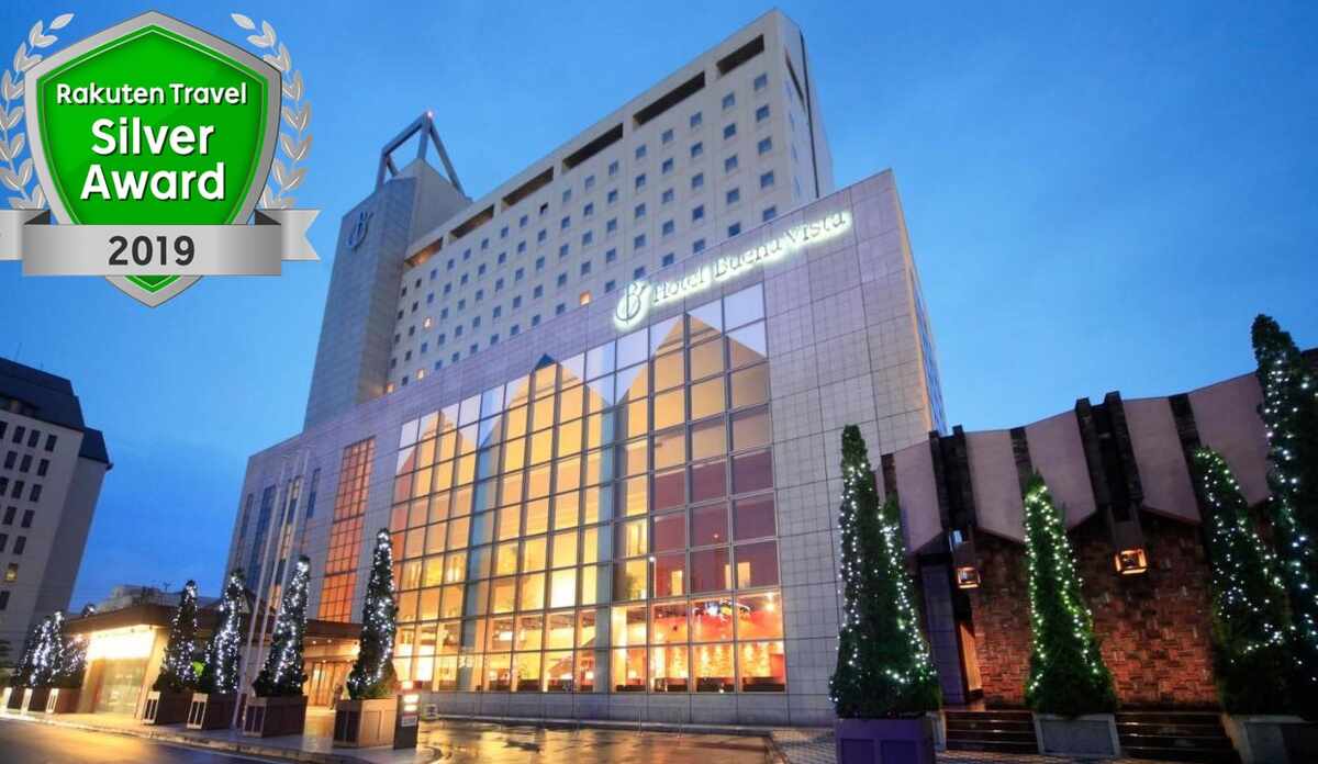 じゃらんから駐車場無料、朝食付きで一人一泊1万で済みました。4月の閑散期ということもあっての値段なのでしょうが、そもそも宿泊客も大していませんでした。車で行ったので駅からのアクセスなどはわかりませんが、全体に高級感のあるホテルで、朝食も品数豊富でどれも美味しく10000円はお値打ちだと思います。しかし、ブエナビスタ自体はスペイン語で良い景色という意味で、最上階のレストランの名前もスペイン語でソルプレサ、驚きという意味なのですが、フレンチのレストランだったのが解せないですね。