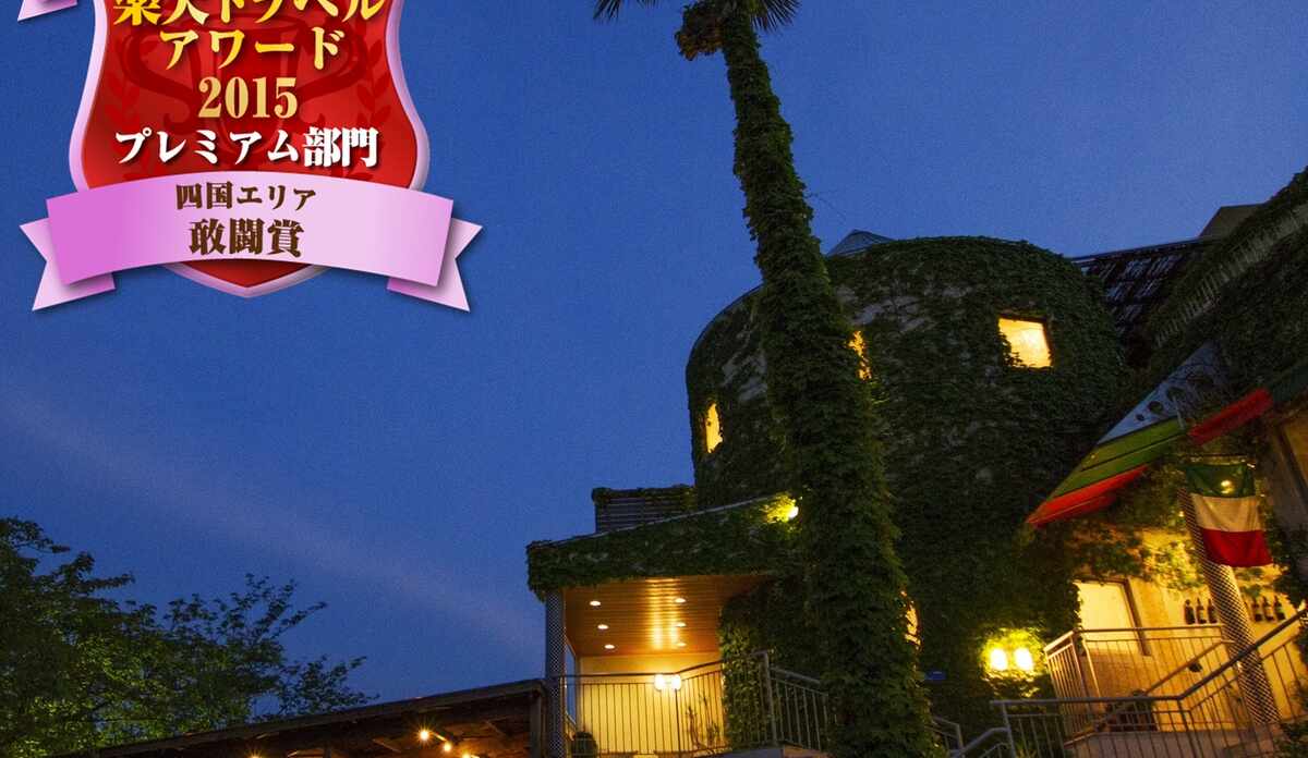 本格イタリアンを味わうことができる隠れ家のようなリゾートホテル。鳴門海峡を望むレストランで、新鮮な魚介類や自家菜園の野菜など旬の食材をふんだんに取り入れたイタリア料理とワインをいただくことができます。全14室の客室はすべてメゾネットタイプとなり、本館の客室は、瀬戸内海を一望する露天ジャグジーを完備。高台に佇む離れ客室は、里山に沈む夕陽を眺められる半露天風呂付きです。イタリア直輸入のテラコッタタイルとこだわりのインテリアが配された屋内ガーデンテラスも魅力です。