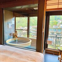 一泊しました。 【良かった点】 ・部屋の露天風呂が思っていたよりも大きかった。足が伸ばせる広さ! ・浴衣の柄が選べる! ・浴衣のほか、パジャマ(?)、バスローブまである! ・部屋の鍵を二つ貰える! ・チェックアウトの11時まで温泉に入れる! ・空の冷蔵庫があるのは嬉しい! ・地下の露天風呂が広くて良かった! ・コーヒーを無料で何杯もいただけた! ・夕食のバイキング、ソフトドリンクが無料だった! 【残念な点】 ・朝食・夕食のバイキング、品数が少なく感じました… ・部屋の鍵、部屋の中からの開閉がしづらかった ・階段が古い(カーペットがめくれている、汚れている) 値段からして、とっても良いお宿でした! また泊まりに行きたいと思います(o^^o)