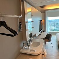デラックスツインに宿泊しました。 海やたくさんの建物が見えます。 夜になると無数の光がとても綺麗です。 窓際にソファーがあるので そこに座っていると 時間を忘れ外を見ていられました。 朝食はデニッシュ系のパンが充実しています。 中華系の物もあるので 横浜っぽいなと思いました。 新しいホテルなので とても気持ちよく過ごせました。