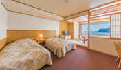 夕食は近くのお店で食べるため朝食のみで宿泊した、3月1日から経営が変わったため入口に花輪が飾ってあった。室内や大浴場は殆んど変わりなかったが、朝食は美味しいが品数が少なくなった気がした。全ての部屋がオーシャンビューで朝、夕の景色が素晴らしく、それに屋上の大浴場と露天風呂からの夜空は忘れがたい。