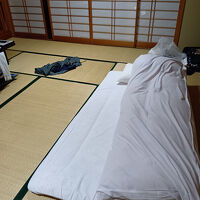 部屋は一人にしては広かった。チェックインの際に広めですと言われたが、綺麗だし大満足でした。また館内に二箇所の温泉がありました。またグループのホテルの温泉巡りが楽しめて、この宿泊費で温泉巡りが楽しめるなんて驚きです。 ただ寂れた温泉地で食事場所が少ないだけが残念でしたが、運よく楽しい居酒屋に行き当たりました。元芸者さんがママさんで楽しい夜を過ごす事ができました。