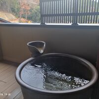 京ごはんと露天風呂の宿 「ゆのはな月や」露天風呂付き都和室に宿泊しました。 亀岡 湯の花温泉の中では一番新しいお宿です。 私達は露天風呂と食事を楽しみに行っているのでいいのですが 眺望はよくありません。 お部屋の露天風呂も前を走って