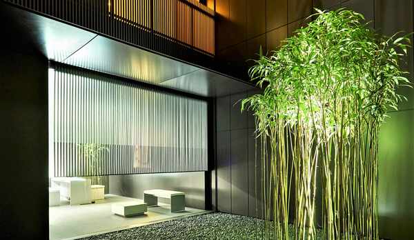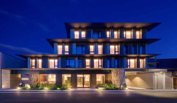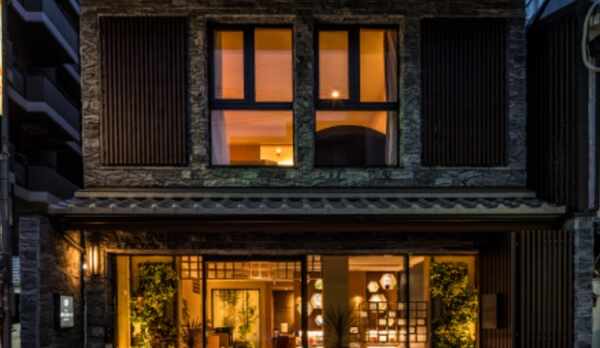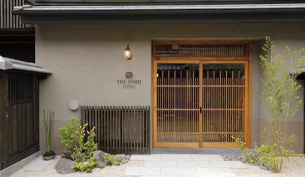 京町家をスタイリッシュに表現した空間が魅力のホテル。建築家の山口隆氏が手掛けています。伝統とモダンが融合する洗練された雰囲気の客室には、日本の職人によって造られたオリジナル家具を配置。南部鉄器や山中漆器の茶器セット、matohuの草履、SHIGETAのバスアメニティなど、こだわりのアイテムを揃えています。6~8階には、中央に吹き抜けの坪庭を設けており、壁一面に広がるクチナシの植栽に面した「MOGANA ROOM」を用意しています。朝食は、淡路島の食材を使用した料理を客室でいただくことができます。