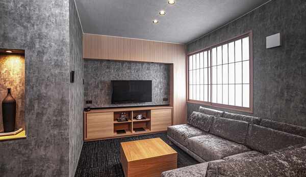 京都市内の静かな通りに佇む町家。明治時代に建てられた京町家をリノベーションした一軒貸しスタイルの宿泊施設です。1階には、坪庭を眺めながら入浴できる檜風呂や、掘りごたつをしつらえた和室などを用意。アイランドキッチンには調理器具や食器などを揃えています。2階には、丸い行灯と石庭を思わせるソファが設置されたラウンジスペースや、ベッドルームがあります。カフェスペースやカウンターのチェアには、木肌の感触がここちよい「カリモク家具」を採用。地下鉄烏丸線「丸太町駅」5番出口より徒歩約2分のロケーションです。