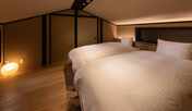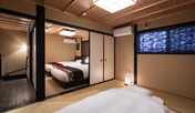 祇園の中心部に位置する、隠れ家のような一棟貸切の宿泊施設。敷地内には、平屋の「ラウンジ棟」と二階建ての「客室棟」の全2棟の京町家があります。「ラウンジ棟」には、畳の小上がりや色鮮やかなソファを備えたリビングスペース、ミニキッチンのほか、オールインクルーシブのミニバーを用意。「客室棟」には、京の伝統工芸品「京唐紙」を使用したモダンな襖が目を引く和室をはじめ、シモンズ製のセミダブルベッド2台配した寝室や、檜造りの浴槽を設えた浴室があります。浴室では、大きな窓の向こうに広がる小竹と枯山水の庭園を眺めながら入浴することができます。食事は「泉仙」の精進料理または和食を客室にて味わえます。