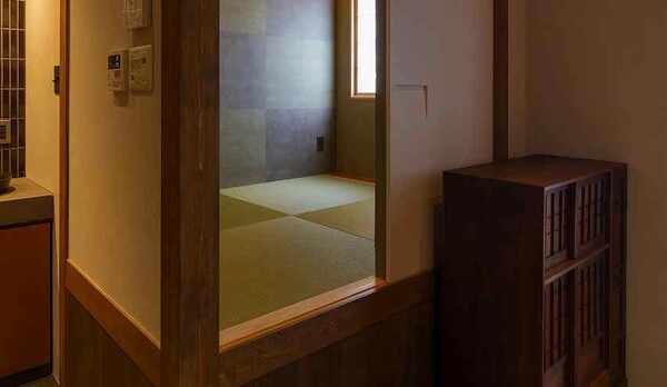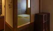 我が家のように寛ぐことができる、一棟貸切の京町家。古建具や柱など建築当時から残る趣を残しつつ、快適にリノベーション。室内は、明治・大正時代のアンティークな家具を配したレトロモダンな雰囲気です。1階には和室・キッチン・浴室を、2階には、2室の寝室と「図書の間」を用意。寝室は、大雲や梅の丸など日本伝統の文様が描かれた襖や、組子の書院戸などがある和の風情あふれる空間です。青色の陶器タイルでしつらえた浴室では、庭を眺めながら入浴できます。食事は、精進料理や会席料理などを用意しています。