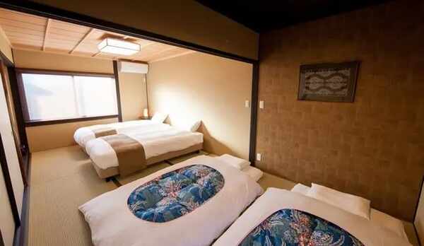1棟貸し切りの宿泊施設で、鳥羽街道駅から徒歩1分です。京都駅からは東福寺駅で乗り換えが必要です。 2階は2部屋、1階は1部屋とリビング、キッチンがあり、6人で泊まりましたが、十分な広さでした。 清掃も綺麗に行き届いています。