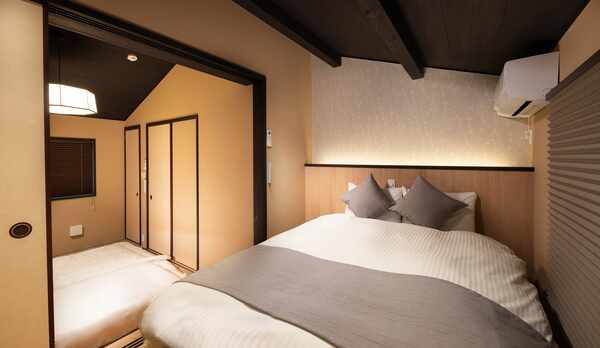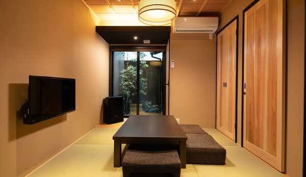 閑静な住宅街に佇む、趣のある町家。北棟と南棟に分かれた1棟貸しのプライベート空間で、くつろぎの時間を過ごすことができます。室内には、椅子とテーブルを配した坪庭を臨む和室や、調理器具・食器類を揃えたキッチン、つぼ風呂を完備した浴室などを用意。北棟にはダブルベッドと3組の布団を、南棟には5組の布団を揃えています。地下鉄九条駅より徒歩約5分のロケーションです。