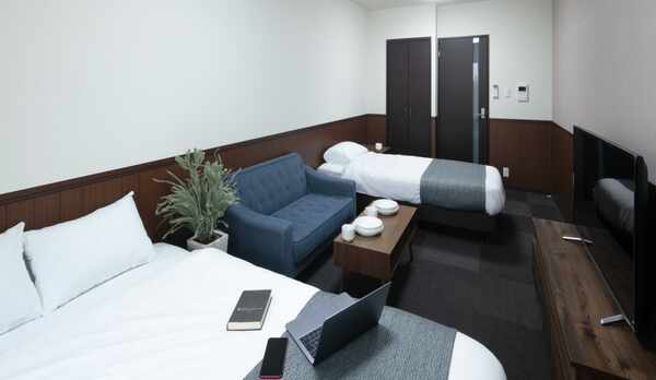 京都伏見の静かなロケーションに建つコンドミニアムタイプのホテル。地下鉄「竹田駅」より徒歩約1分です。客室は、スタンダードダブルやスーペリアクイーンなどを用意。畳スペースを設えた、和洋室のスイートルームも揃えています。全室にキッチンを完備しており、冷蔵庫や洗濯機などの家電も設置。寝具にはシモンズ製ベッドを採用しています。テレビでは、YouTubeやNetflix、Huluなどを視聴することができます。館内にはカフェ&バーを併設。夕食は、新鮮な魚を使った握り寿司や箱寿司などを、朝食は自家製米のおにぎりセットをいただくことができます。