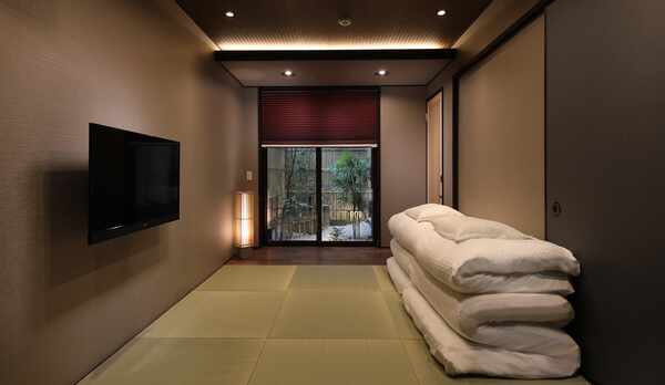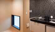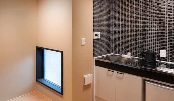 京都駅より徒歩約5分、モダンなデザインの中に和の要素を取り入れたホテル。ロビーにはハニカムタイルの床や無垢材の柱などを設えており、シックな空間が広がります。客室にはyogiboのクッションを配した畳スペースがあり、くつろぎの時間を過ごすことができます。レプロナイザーのドライヤーや調光付きバスルームなども設置。館内のキッチンにはバルミューダ製のトースターをはじめ、電子レンジや食器類などを揃えており、自由に使用することができます。こだわりの家電やアメニティで、暮らすような滞在を楽しむことができます。