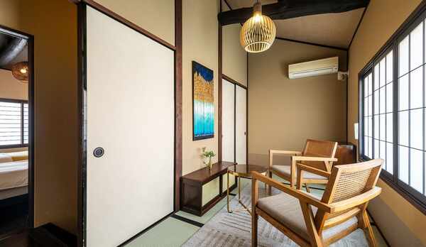 地元の暮らしに根付く「今熊野商店街」に溶け込むように佇む、一棟貸しの町屋。1階には、吹き抜け「火袋」から自然光が差し込むキッチンや、和の趣溢れる浴室などを用意。食事や団らんを楽しめる和室では、つくばいや庭園灯を配した坪庭を臨むことができます。2階には、歴史を感じる梁が通った寝室や、こだわりの家具を設えた落ち着いた雰囲気の和室を用意しています。「清水寺」や「祇園」が徒歩圏内にあり、観光の拠点としても便利なロケーション。周囲にはノスタルジックな喫茶店や飲食店、地元の食材やお茶、和菓子など京都ゆかりの商品を取り扱う店舗が建ち並び、1歩外に出れば京都のローカルな雰囲気を味わうことができます。