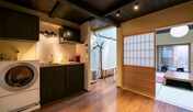 築100年以上の京町家をフルリノベーションした、愛犬と宿泊できる一棟貸しの宿泊施設。京都らしさを感じる和の空間に、こだわりの海外インテリアを設えた和モダンなデザイン。室内には、広々としたリビングや調理器具を揃えたアイランドキッチン、グレーを基調としたシックな雰囲気の洗面所と浴室を用意。浴室には檜風呂を備えており、木の香りに包まれながら湯につかることができます。乾燥機付き洗濯機や冷蔵庫、電子レンジなども設置しています。玄関には犬用の洗い場を完備。トイレトレーや犬用マットレス、犬用お風呂など、愛犬用アメニティも充実しています。