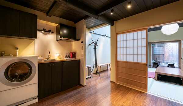 閑静な住宅地に佇む京町家で宿泊することができます。築150年以上の伝統家屋をフルリノベーションした室内は、和の趣あふれる空間。1階には、テレビやテーブルを配置した和室を用意。食器類を揃えたキッチンには、IHコンロや電子レンジ、電気ケトルなどを完備しています。長期滞在にも便利な乾燥機付き洗濯機を設置。2階には、ベッドを配した寝室と畳スペースがあります。夕食は季節ごとの旬の食材を使った仕出し料理を、朝食は関西風の卵焼きサンドイッチや、こだわりの精進料理などを注文することができます。阪急大宮駅より徒歩約9分、JR丹波口駅より徒歩約10分です。