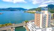 JR西舞鶴駅より徒歩約1分、レンガ造りの外観が特徴のホテル。最上階のレストランが魅力で、眼下の街並みや四季折々の山々を眺めながら、食事をいただくことができます。カフェレストランも併設。朝食は、旬の地元食材を使用したメニューをビュッフェ形式で用意しています。客室はシングル・ダブル・ツインの洋室や広さ6~8畳の和室などさまざまです。館内には、大浴場や宴会場、会議室なども完備。また、ホテルの別館や長期滞在などに便利なマンスリーの宿泊施設なども用意。「舞鶴赤れんがパーク」まで車で約15分です。