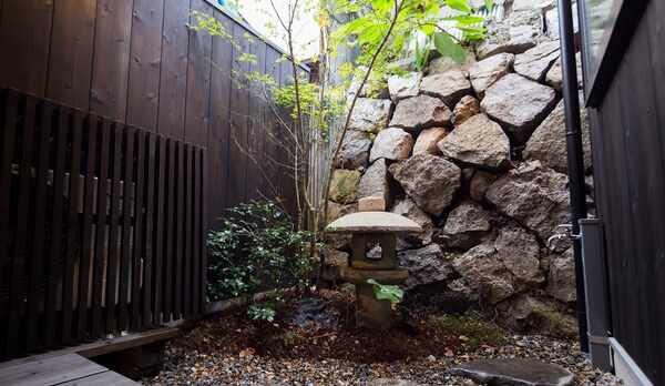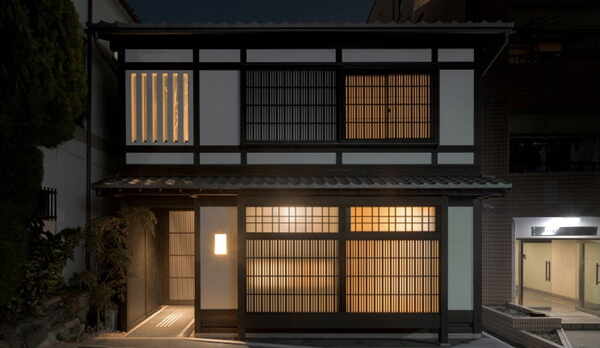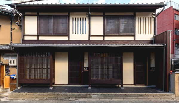 漆喰の白壁に濃茶の出格子、一文字瓦など、京町家の伝統的な外観デザインが特徴の宿。ノスタルジックな雰囲気の室内は、色付きガラス・花ガラス・ダイヤガラスに彩られた空間。1階には、華やかなモザイクタイルを敷き詰めたホールや、調理器具・家電を揃えたミニキッチンなどを用意。浴室からは、白のモザイクタイルで設えた浴槽につかりながら、手水鉢のある坪庭を眺めることができます。2階には、和傘のような照明を設置した寝室を用意しています。「祇園花見小路」までは徒歩約1分。お茶屋さんや舞妓さんを目にすることもあり、京都観光に最適なロケーションです。