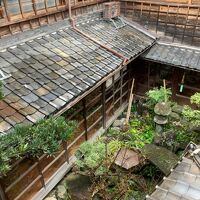 勢田川の水運を利用した問屋街として発展した商業の町、河崎エリアに建つレトロな旅館です。中庭を囲むように回廊をめぐらした2階建ての建築で、2階の廊下には朱塗りの橋まで架かっています。風呂は家族風呂、トイレと洗面所は共用です。昭和レトロが好きな人にはかなりおすすめです。ホームページには「通気性は良好ですが機密性は良くありません。」と書かれていましたが、部屋の中はエアコンが効いていて快適でした。