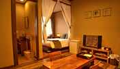 伊豆高原に位置する、リゾート感あふれるアジアンテイストのホテル。眼下に広がる相模湾を一望できる客室露天風呂が魅力です。全室に、信楽焼の湯釜や檜の縁を設えた石張りの浴槽など、それぞれ趣向を凝らした半露天風呂を完備しています。客室タイプは、ダブルやツインのほか、メゾネットタイプを用意。満天の星や朝陽に照らされる海を眺めながら、くつろぎの時間を過ごすことができます。夕食は石焼ナシゴレンをはじめ、伊豆の素材を使用した創作アジアン料理を、朝食はアワビのお粥などを、夕食、朝食ともに部屋食でいただくことができます。館内には、貸切可能な内湯や蔵書を揃えた読書スペースなどを併設。ホテルまでは、伊豆急行線「富戸駅」より送迎を行っています。