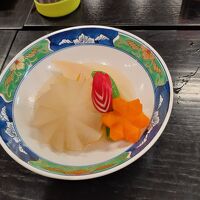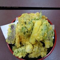 食事の量が多いとは知っていましたが、天ぷらの山盛りには驚きました。4人分かと思ったら一人分でした。特大稲荷寿司と天ぷらはお土産に持ち帰り、帰りの電車の中でおいしくいただきました。どの料理も美味しく見た目にも飾り切りできれいに盛り付けられてい