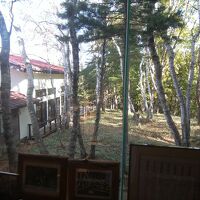 この宿にはお風呂が3か所もある。(そのうち1つは沸かし湯)「森の温泉」は露天風呂に通じる戸をあけ放つと庭の紅葉を遮られることなく楽しみながら入浴できるので実に快適。あと食事は地の野菜、山菜を工夫を凝らした調理で”ピンチョス”の様に凝った盛り付けで出してくれるので目でも楽しめる料理になっていた