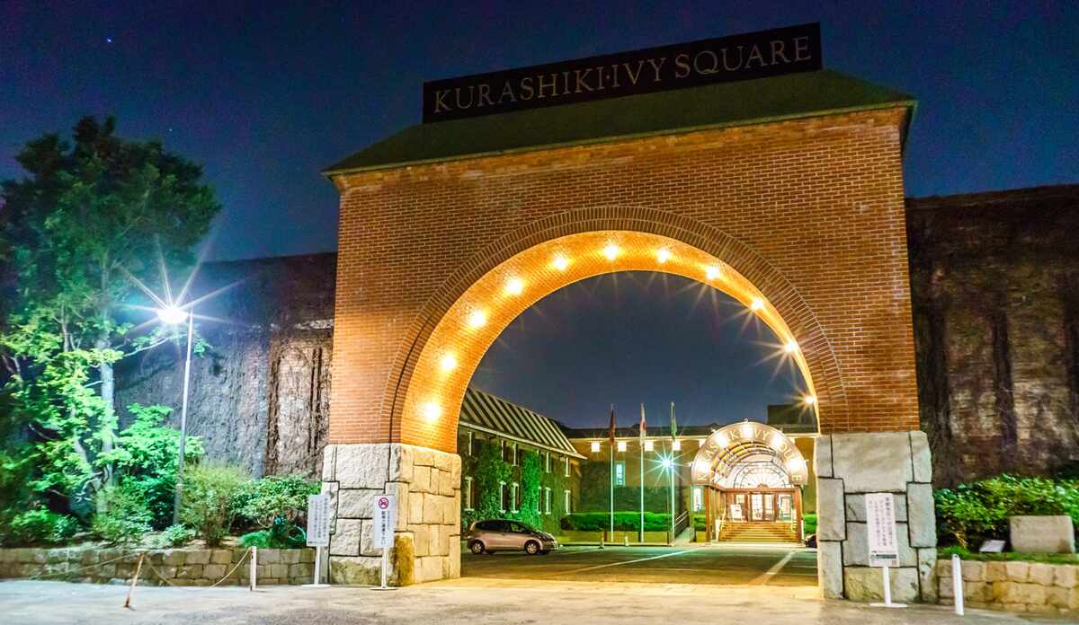 「倉敷アイビースクエア」は、倉敷紡績所の跡地に建つ複合観光施設です。1889年に建設された当時の建物を利用した館内は、特徴的なレンガ積みやガラス、建築様式が見られるレトロな空間です。食事は、紡績工場の名残があるレストランにて、瀬戸内の季節の食材を使用した洋食コース料理や、和食会席などをいただくことができます。木の温もりを感じる客室は、シングル・ツイン・ファミリールームなどを用意。シモンズ製ベッドを採用しています。敷地内には、広さ約1,400㎡の中庭広場や酒樽をイメージしたバーなどがあります。