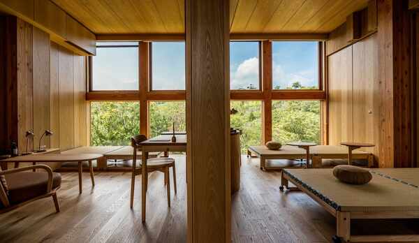 360度広がる淡路島の自然の中で、禅の精神を取り入れた「禅リトリート」を体験できる宿泊施設。四季折々表情を変える木々や満天の星に囲まれながら、自分と向き合う滞在時間を過ごすことができます。建築家の坂茂氏が設計を手掛けており、全長およそ100mものウッドデッキは日本杉のぬくもりを感じる空間です。食事では、砂糖や油、動物性食品などを使用せず、蔵元から直接仕入れた発酵食品・醸造調味料などを使用したオリジナルの禅坊料理をいただくことができます。淡路インターより車で約5分、駐車場も完備しています。