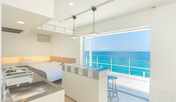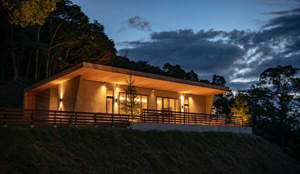 明石海峡大橋を一望できるプライベートヴィラ。ガラス窓越しにインフィニティプール付きのバルコニーが広がる、約80畳の広々としたリビングダイニングが魅力です。オーシャンビューのジェットバスを設えたバスルームもあり、ラグジュアリーな空間で寛ぎの時間を過ごすことができます。ルーフトップテラスには、屋外キッチンやグランピング体験ができるドーム型テントなどを設置。夕食は淡路牛のすき焼きや、地元の山海の幸を使用したBBQなどをいただくことができます。車で約2分のレストランでは、地産地消にこだわった和モダンなイタリアンのコース料理を味わうことができます。