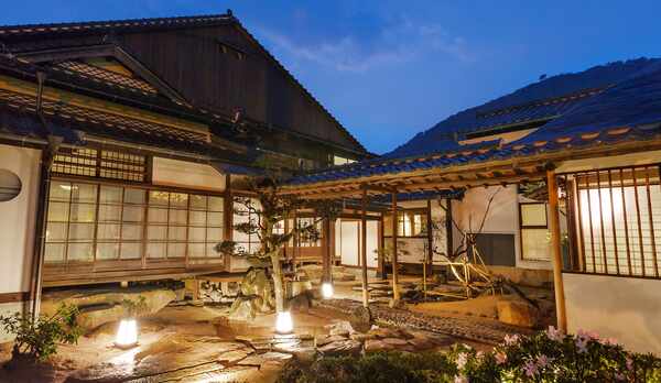 「竹田城跡」の城下町に佇む分散型のホテル。明治時代に建築された「旧木村酒造」を中心に、全6棟の歴史ある建物をリノベーション。建築当時の趣を残したどこか懐かしい空間で、日本家屋の風情を感じながらくつろぎの時間を過ごすことができます。客室は、趣の異なる全13室を用意。窓から「竹田城跡」を望む客室や愛犬との宿泊も可能な一棟貸し客室、酒造場の面影が色濃く残る登録有形文化財の客室などを揃えています。敷地内には、檜の香りが広がる大浴場を併設。夕食は、老舗酒造場の発酵蔵の造りを活かしたフレンチレストランにて、但馬牛のステーキや地場野菜を使用したコース料理を味わえます。朝食は、地元食材にこだわった和定食です。