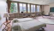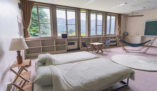 自然豊かな八雲町の山の上に位置する、廃校をリノベーションして生まれた「オモシロイ」に出会える宿泊施設。客室は、音楽室を利用したマウンテンビューのツインルームと、教室を活用したツインルームの2タイプ。窓の向こうに広がるのどかな風景を眺めながら、くつろぎの時間を過ごすことができます。館内には、フリースペースやシャワー、キッチンなどを併設。全館にWi-Fiを完備しているため、ワーケーションにも便利です。敷地内には、キャンプサイトや焚火スペースのほか、本格サウナを楽しめる小屋サウナがあります。滞在中は、さまざまなイベントやアクティビティを楽しむことができます。アクセスは、JR「八雲駅」からバスで約30分です。