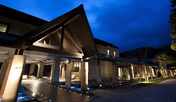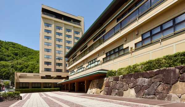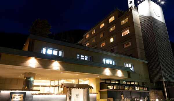 総面積約4,000㎡の広さを誇るウォーターアミューズメントを有するリゾートホテル。広々とした大浴場や露天風呂、地上約60mから目の前に広がる自然を一望する展望浴場などで温泉に浸かることができます。客室は、8畳~20畳の和室や30㎡以上の洋室、約8名まで利用できる和洋室などを用意。客室からは渓流や山を眺めることができます。レストランでは、夕食は寿司やローストビーフなど約60種類の和洋中のメニューを、朝食はお好みの具材で作る海鮮丼などをビュッフェ形式でいただくことができます。
