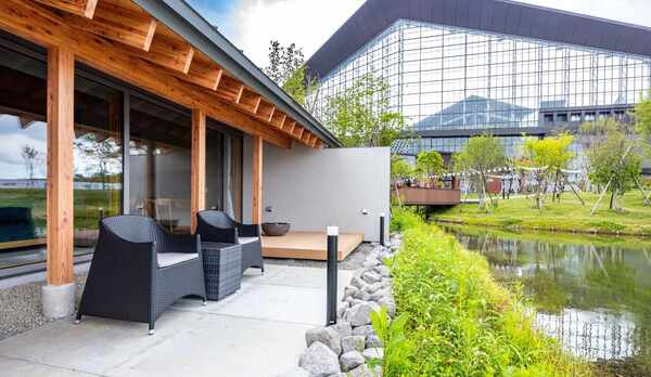 テラスに出ると目の前にエスコンフィールドがそびえ立つ素晴らしい景色。お部屋も広々と開放感があり、アメニティや調度品も超一級品で揃えられています。ドリンクも上質なものが冷蔵庫に満載で、それだけでも楽しめます。 しかも各部屋にサウナがあり、寝転べるように波打ったベンチになっていて最高に気持ちが良く、大きなジェットバスと別に水風呂用の浴槽もあって最高です。 朝食はお隣のカフェから運んできてくれるので、ゆっくりお部屋でいただけるのも良かったです。是非とも再訪したいと思っています。