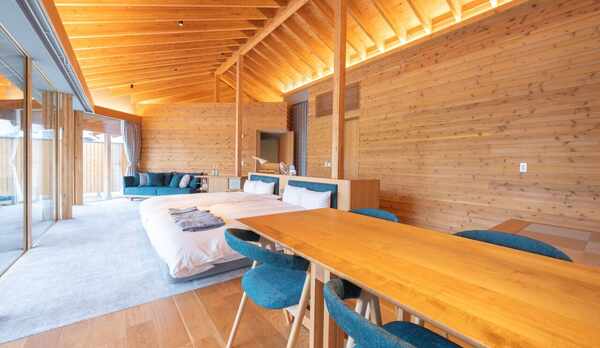 自然豊かな定山渓温泉に建つ、別荘感覚で過ごせる1棟貸切タイプの宿泊施設。2階建てになり、約10名まで宿泊可能です。ペットと一緒に泊ることができる棟もあります。3つある寝室は、ダブルベッドを4台、セミダブルベッドを2台設置しています。長期滞在に便利な調理器具を揃えたキッチンや洗濯機を完備。広めの浴槽をしつらえたバスルームもあります。Wi-Fiを利用することができます。足を延ばして浸かることができる人工温泉を備えています。夕食や朝食に北海道の旬の食材を使った食事をいただくことができます。