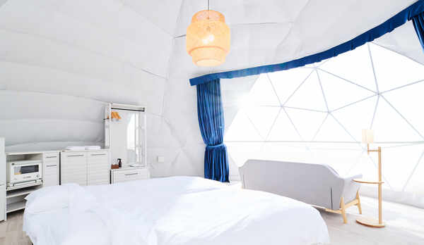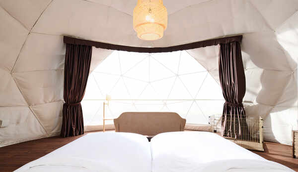 40,000㎡の敷地に30客室のみの、開放的な滞在と千葉の広大な自然を堪能できるグランピングリゾート。1日約30種類の選べるアクティビティも体験することができます。客室は、コテージ・ドームテントグランピング・ベルテントグランピングの3種類を用意。室内には、エアコンや冷蔵庫などが完備されています。夕食は、海鮮やステーキ・パエリアなどが炭火でいただける本格BBQグリルを、各テント前でいただくことができます。朝食は、ホテルモーニング形式の和洋食をセンターハウス又は各テント前でいただけます。