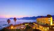 鴨川市の小湊海岸に佇む全室オーシャンビューの「三日月シーパークホテル安房鴨川」。客室や露天風呂からは、太陽が反射して輝く海の様子や夕景など、時間とともに移り変わる壮大な景色を一望することができます。水着で遊べるプールにジェットバス、岩盤浴が付いた南国風の屋内スパなども完備。夕食で味わえるのは、新鮮な食材をオープンキッチンで調理した寿司、ステーキ、天ぷらなどをはじめとする多彩なメニュー。周辺には、「鴨川シーワールド」や「マザー牧場」などの観光スポットがあります。