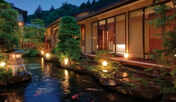 鴨川・太海海岸沿いに佇む和風建築の旅館。客室は、全室オーシャンビューの離れ客室を用意。各室に十和田石または大理石の浴槽を備えた温泉露天風呂を完備。眼前に広がる瑠璃色の海や水平線に沈む夕陽を眺めながら、鴨川温泉の湯につかることができます。広さ70㎡以上のゆとりある室内には、木や畳のぬくもりに包まれる和の空間が広がっています。夕食は、房総の魚介類をふんだんに使用した懐石料理です。器にまでこだわった彩り豊かな料理を堪能することができます。館内には、幻想的な雰囲気を演出する水盤を配したくつろぎスペースを併設しています。