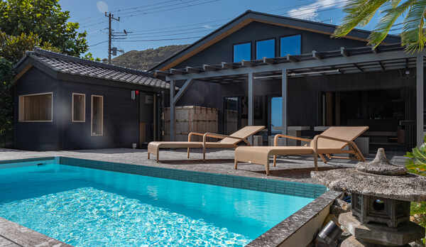 目の前に壮大な海が広がるオーシャンビューが魅力の貸別荘。都会の喧騒から離れ、刻々と変化する海を眺めながらゆったりとしたひとときを過ごすことができます。客室内は、和の伝統的な美しさを現代風にアレンジした和モダンな空間。広々とした開放的なリビングには、カラオケやホームシアターなどを設置。浴室では、鴨川温泉の湯に浸かることができます。屋外には、海を一望できる温水プールやロウリュを楽しめるサウナ、水深1.9メートルの水風呂などを併設。大型ガスコンロを備えたBBQテラスもあり、心地よい風を感じながらBBQを楽しむことができます。