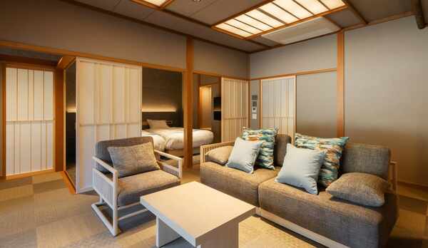 豊かな自然に囲まれた「広丞庵 かのか」は、全3室の隠れ家のような旅館です。表情を変える自然や野趣あふれる露天風呂、プライベートを大切にした空間で癒しの時間を過ごすことができます。客室は離れとなっており、木材を使った温かみのあるインテリアと障子や畳が配された和モダンな空間。移り変わる木々の景色を望む開放的な露天風呂やウッドデッキのテラスを完備。夕食は囲炉裏を配した食事処にて、産地直送の牛肉、魚介、野菜など季節の素材を使用した炭火焼き会席料理を味わうことができます。