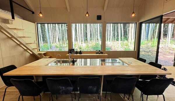 千葉県勝浦市の自然の中に佇む、静かな場所に位置する一棟貸し切りの貸別荘。施設内は全面天然芝で、四季折々の木々に囲まれ豊かな自然に包まれています。客室棟は「ドギーハウス」と「ホビーハウス」の2棟を用意。「ドギーハウス」は約500坪の敷地に、国産木材のみで建築した愛犬と同伴可能な客室があり、専用のドックランを完備。寝室からドッグランを見渡すことができます。「ホビーハウス」は約800坪の敷地に、広々とした天然芝フリースペースを併設。また、建物内には30畳のフリースペースがあり、室内ブランコやハンモックを完備しています。家族や友人、わんちゃん連れの方も、都会の喧騒から離れたプライベート空間で、バーベキューなどを楽しみながら心安らぐひとときを過ごすことができます。