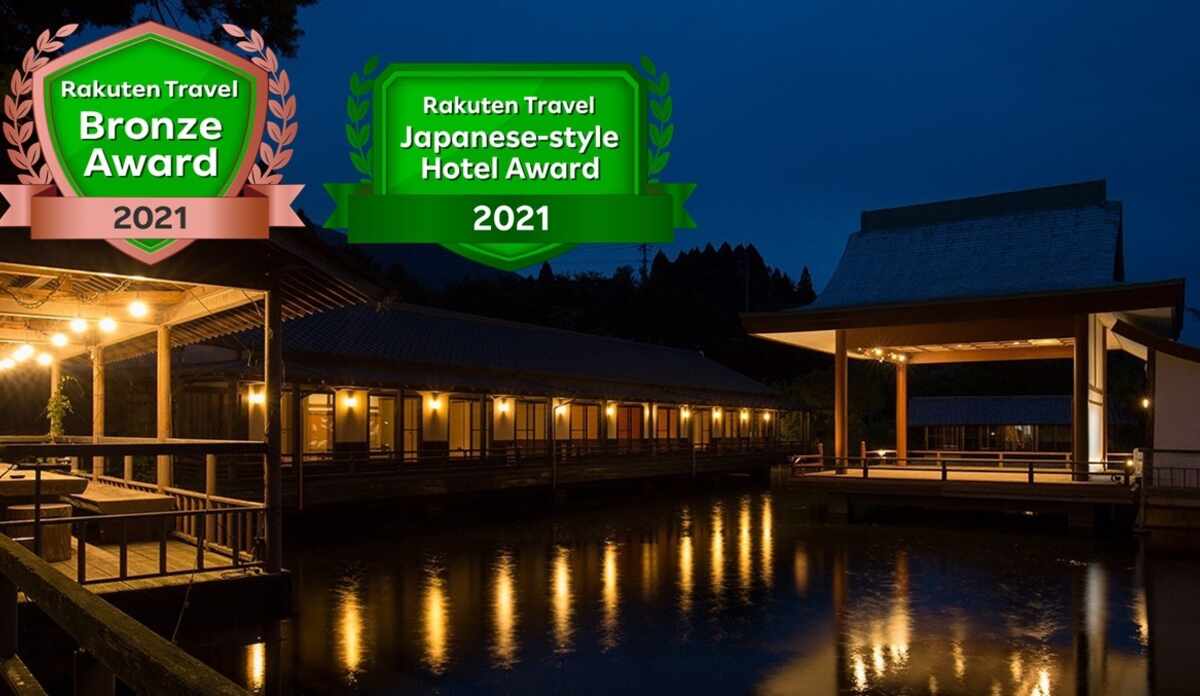 南阿蘇の山々に囲まれた田園地帯に佇む、全室離れ形式の旅館。全室に岩造りの内湯と露天風呂を備えた客室は、洋室や和洋室などを用意。烏帽子岳を一望できるテラス付きの客室も揃えています。あたたかみある和モダンなプライベート空間で、心安らぐひと時を過ごせます。夕食は、阿蘇あか牛や山女など、地元食材をふんだんに使用した会席料理です。朝食は、季節野菜のサラダバーをはじめ、焼き魚や湯豆腐などの滋味あふれるメニューを味わえます。敷地内には、焼酎やコーヒーを取り揃えた和み処や、和太鼓体験ができる神楽殿などを併設。滞在中は、陶芸やヤマメ釣り、サイクリングなどを楽しむことができます。旅館までは、南阿蘇鉄道「長陽駅」より送迎を行っています。
