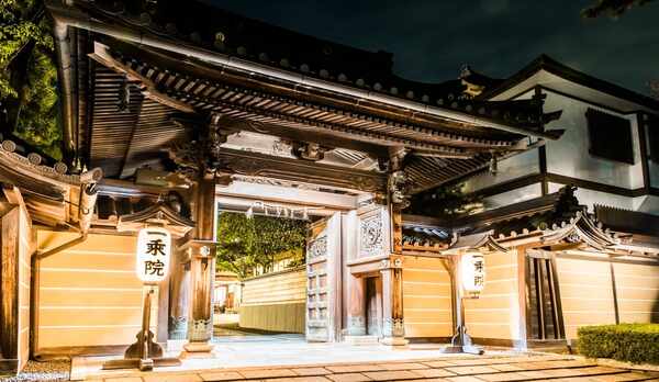 平安時代より続く「總持院」での宿泊体験を楽しむことができます。敷地内には、1,000坪の緑豊かな日本庭園を併設。客室は、全13室の和室を用意。スタンダードな本館の客室をはじめ、庭園に面した離れ客室や、木のぬくもりを感じる風呂を設えた特別室なども揃えています。風情あふれる和の空間で、くつろぎの時間を過ごせます。客室内には湯沸かしポットや冷蔵庫を設置。食事は、季節の食材を使用し、盛り付けにもこだわった月替わりの精進料理をいただくことができます。館内には、宴会場や大浴場を完備しています。