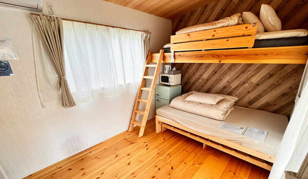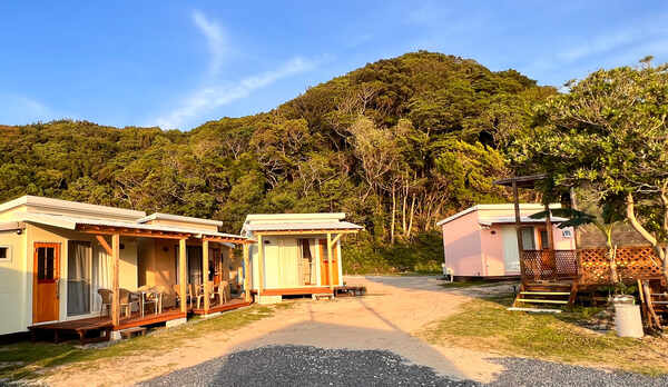 海と森林に囲まれた大自然の中に位置する静かなキャンプ施設。気軽に楽しめるグランピングから本格的なキャンプまで体験することができます。キャンプエリアは、お好みのスタイルに合わせた3つのエリアから選択可能。ペット同伴可能なエリアもあります。1日1組限定のグランピングは、手ぶらで楽しむ手軽さと快適さを兼ね備えたカジュアルなスタイルが魅力です。グランピングハウス(ロッジ)は、一棟貸しのプライベート空間で、ベッドやバス、トイレも備わっており、アウトドアを楽しみながら快適な滞在をすることができます。さらに、目の前のビーチでは、シュノーケリングやカヤックなどの、さまざまなマリンスポーツも楽しめます。
