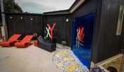 眼前に広がる太平洋を一望できる、温泉露天風呂付きの客室が魅力。水平線に沈む夕陽を眺めながら、くつろぎの時間を過ごすことができます。露天風呂は電動開閉式となっており、クローズの状態ではステンドガラスから光が差し込む「温泉リビング」になります。客室タイプは、和室・和洋室を揃えており、オリジナルデザインの家具を配置したスタイリッシュな空間です。夕食は炭火焼きのコース料理を用意。紀州梅真鯛のカルパッチョをはじめ、地元野菜のバーニャカウダや黒毛和牛の炭火焼などをいただくことができます。敷地内には、ブランコや椅子を設置したプライベートユースの海岸があります。