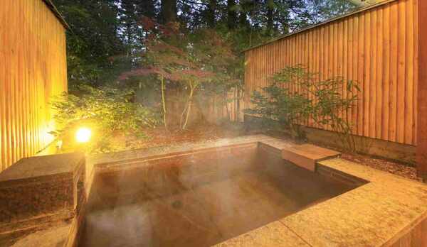 箱根強羅温泉に位置する、緑深き自然の中に佇む旅館。温泉は、御影石でできた風呂、川をイメージした風呂など約4種類の貸切露天風呂や、大浴場で浸かることができます。夕食は、旬の食材を使用した色鮮やかな会席料理などを用意。客室は、和室や洋室をはじめ、半露天風呂や露天風呂が付いた和モダンな雰囲気の客室などさまざま。客室からは箱根の山々や庭園などを見渡すことができ、大自然を間近に感じることができます。色とりどりの浴衣からお好みの1着を選ぶことができるのも魅力。木々を眺めながら入れる足湯もあります。